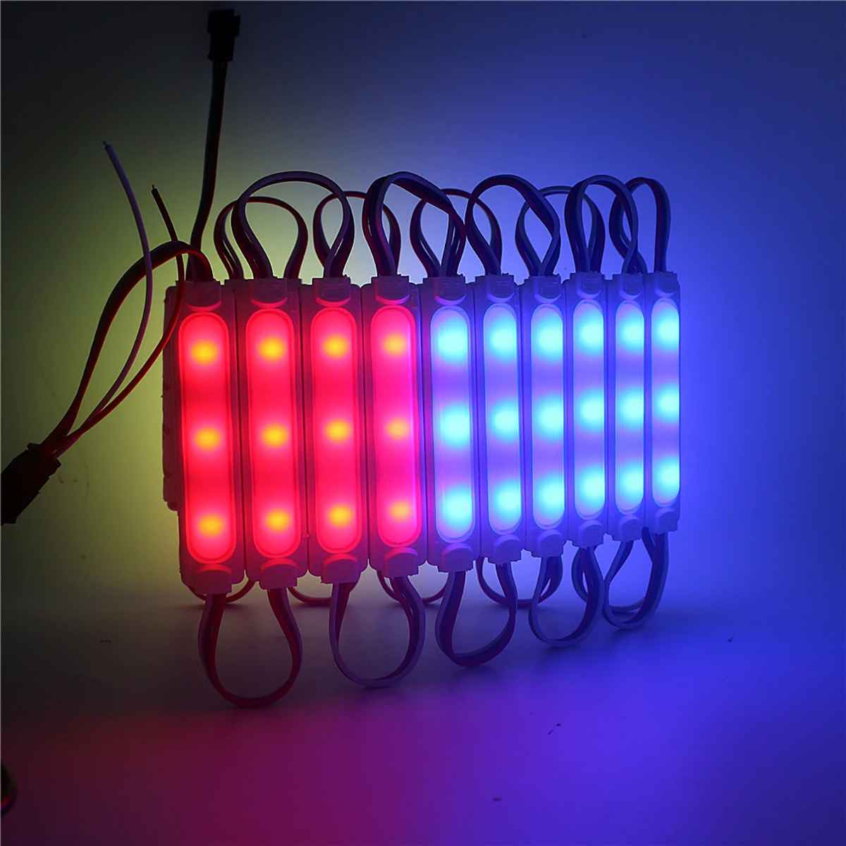 Modulo LED RGB digitale completo di centralina e telecomando per gestire tutti gli effetti ideale come retroilluminazione di tabelle, tabelloni, insegne pubblicitarie, insegne di negozi, tabelloni pubblicitari, all'interno di vetrine. Il modulo è composto da 20 LED da 1W con potenza totale di 20W ed è dotato di adesivo per un facile il fissaggio su superfici piane. Possiamo impostare qualsiasi colore oppure scegliere un effetto luminoso tra quelli già perimpostati.