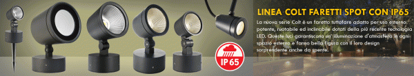 COLT faro LED spot ad alta luminosità adatto uso esterno dotato di base di fissaggio può essere installato a soffitto, pareti o muri per l'illuminazione mirata di oggetti. Il faro ha una potenza di 30W ed un'intensità luminosa di 2320 lumen. Disponibile con temperatura luce: 3000K luce calda.