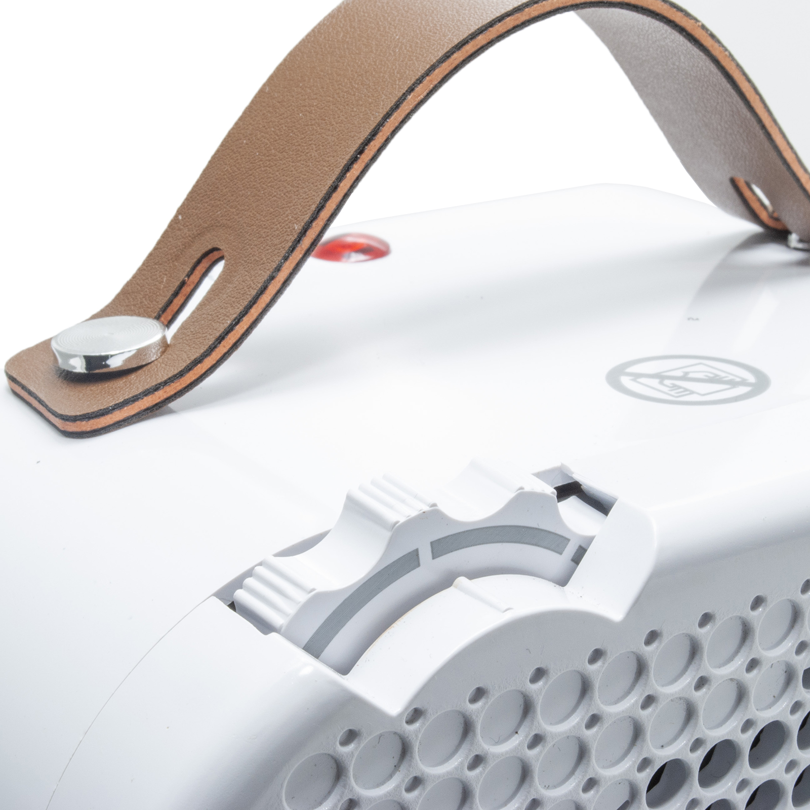 Termoventilatore caldo bagno compatto realizzato con scocca in ABS+PA resistente fino a 105 gradi ideale per riscaldare il bagno e tutti gli ambienti fino a 15 metri quadrati. Ha un design vintage dotato di manico in pelle per un facile trasporto. Dotato di duplice funzione di riscaldamento e ventilatore, è possibile gestire le funzioni attraverso le due manopole poste sul retro.