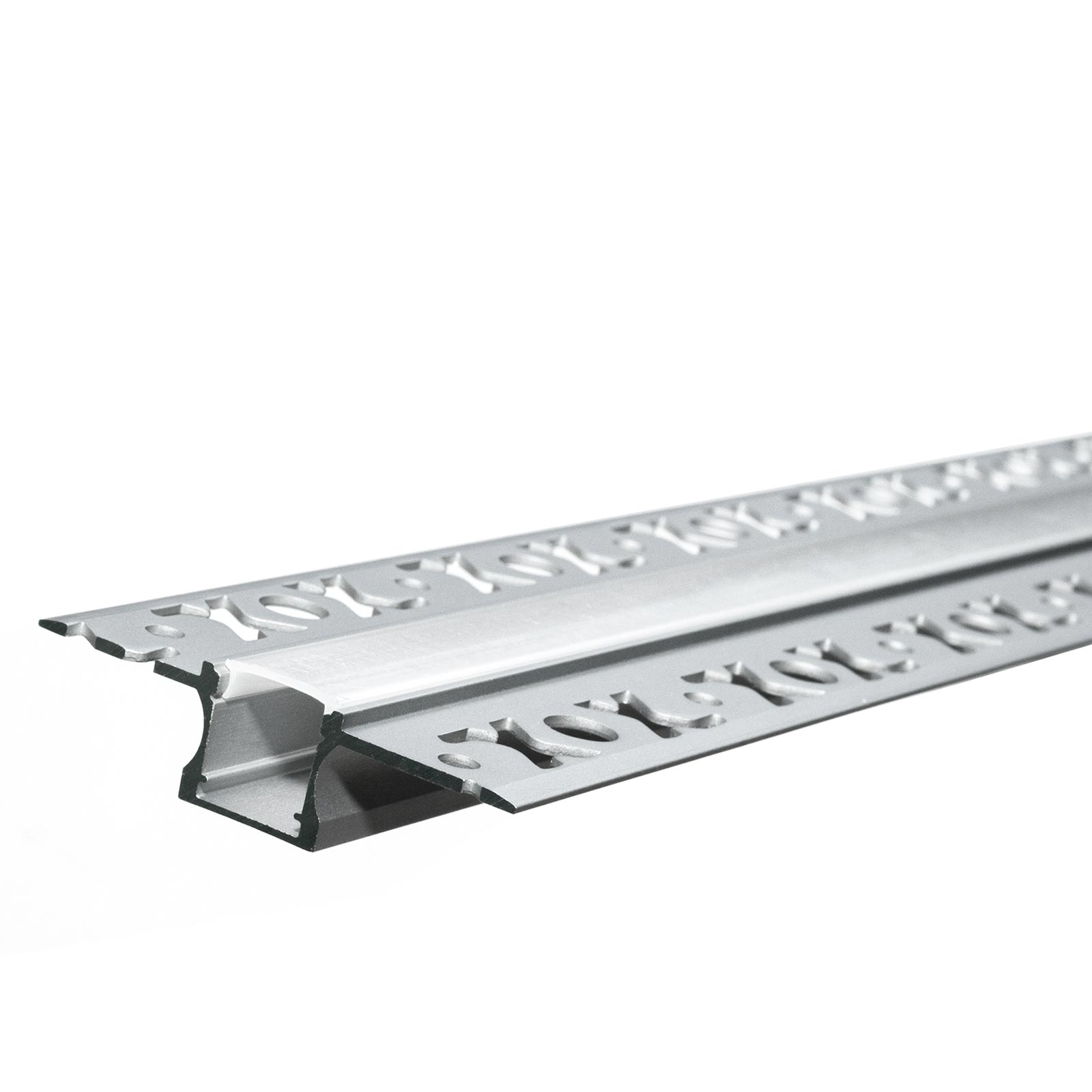 Questo profilo è pensato per essere inserito all'interno del cartongesso; le alette forate vengono stuccate nel cartongesso. In questo modo si vede solo la parte frontale nella quale vengono inserite le strisce LED.