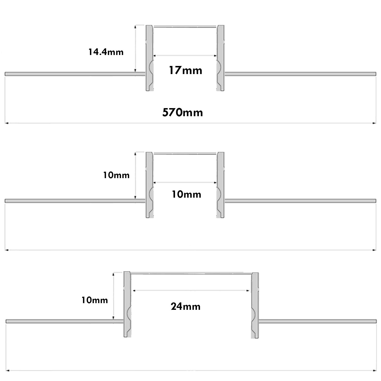 Disponibile in 3 misure con possibilità di alloggiare strisce LED di larghezza da 10mm - 17 mm - 24mm.