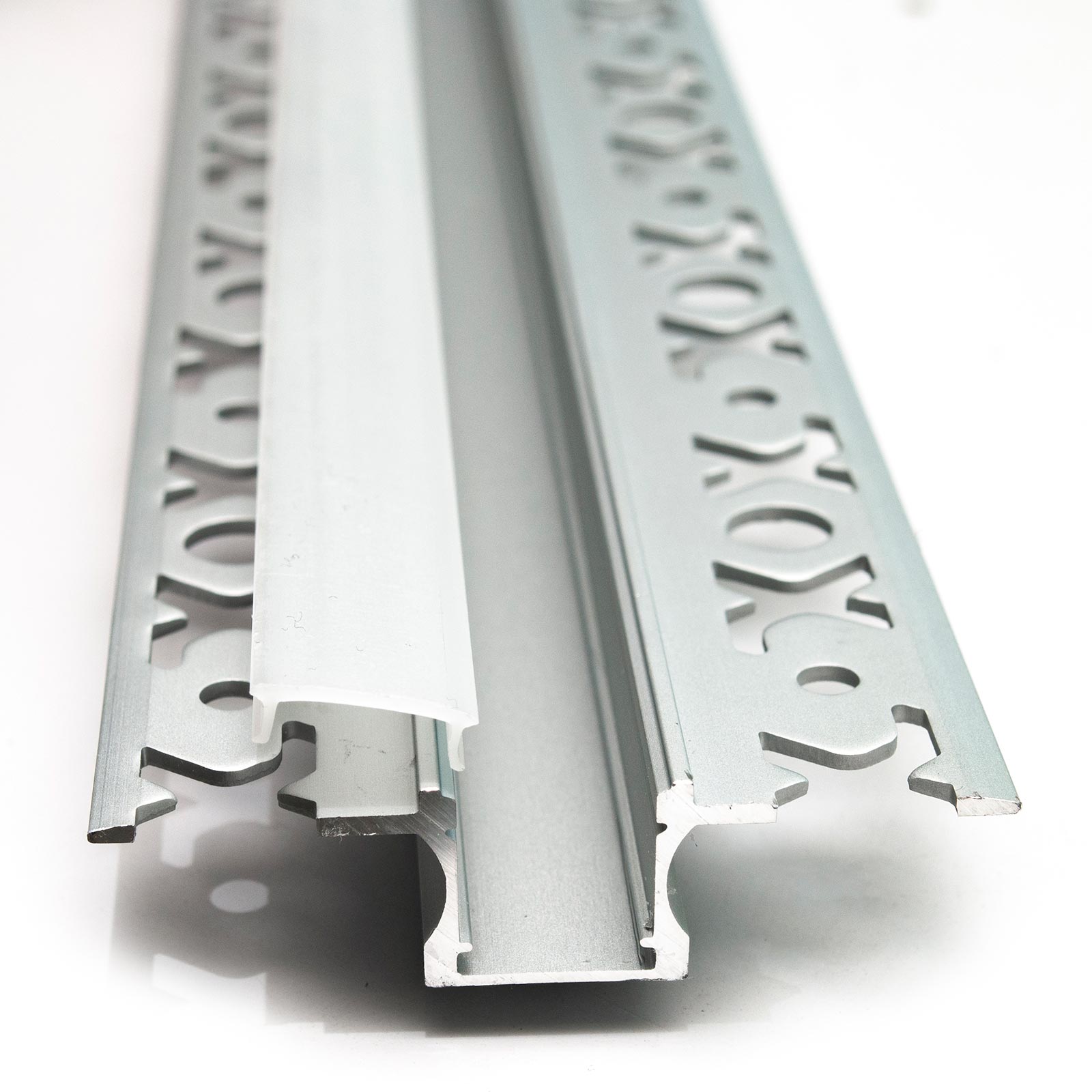 Questo profilo è pensato per essere inserito all'interno del cartongesso; le alette forate vengono stuccate nel cartongesso. In questo modo si vede solo la parte frontale nella quale vengono inserite le strisce LED.