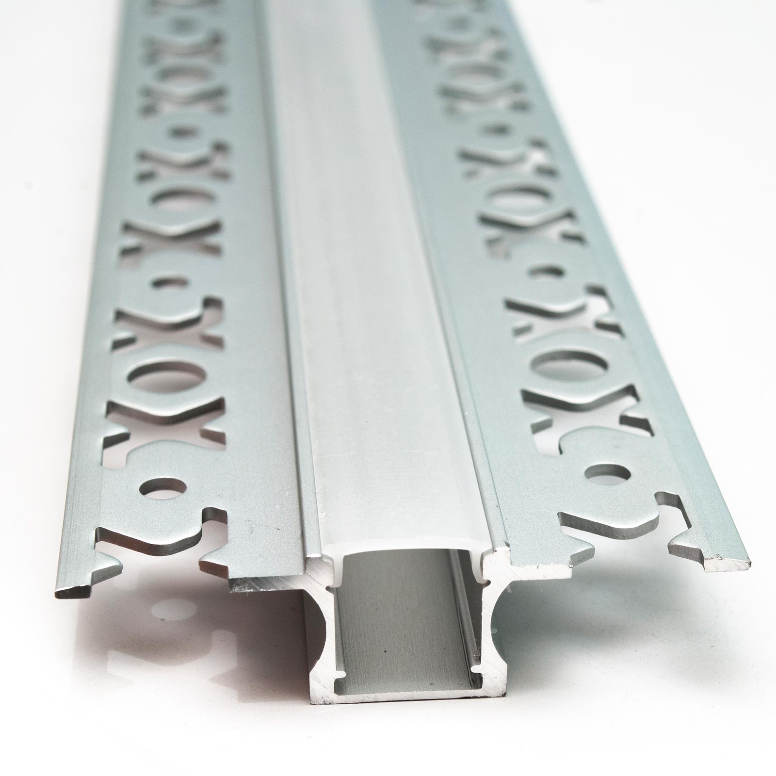 Questo profilo è pensato per essere inserito all'interno del cartongesso; le alette forate vengono stuccate nel cartongesso. In questo modo si vede solo la parte frontale nella quale vengono inserite le strisce LED.
