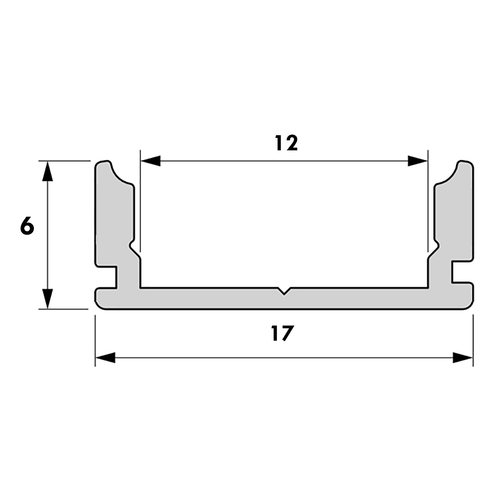Il profilo ha una dimensioni di: 2000mm x 17mm x 6mm