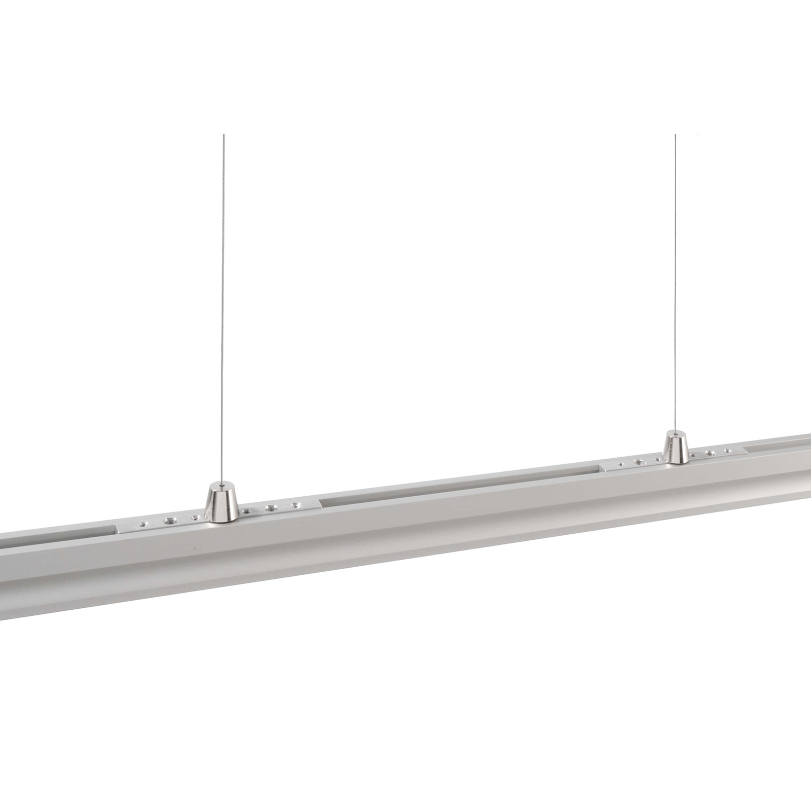 Il profilo a sospensione è dotato di accessorio composto da 2 fili in acciaio adatti per la sospensione più supporto per aggangio cavi. Il kit è munito di tutte le componenti per una rapida e pratica installazione.