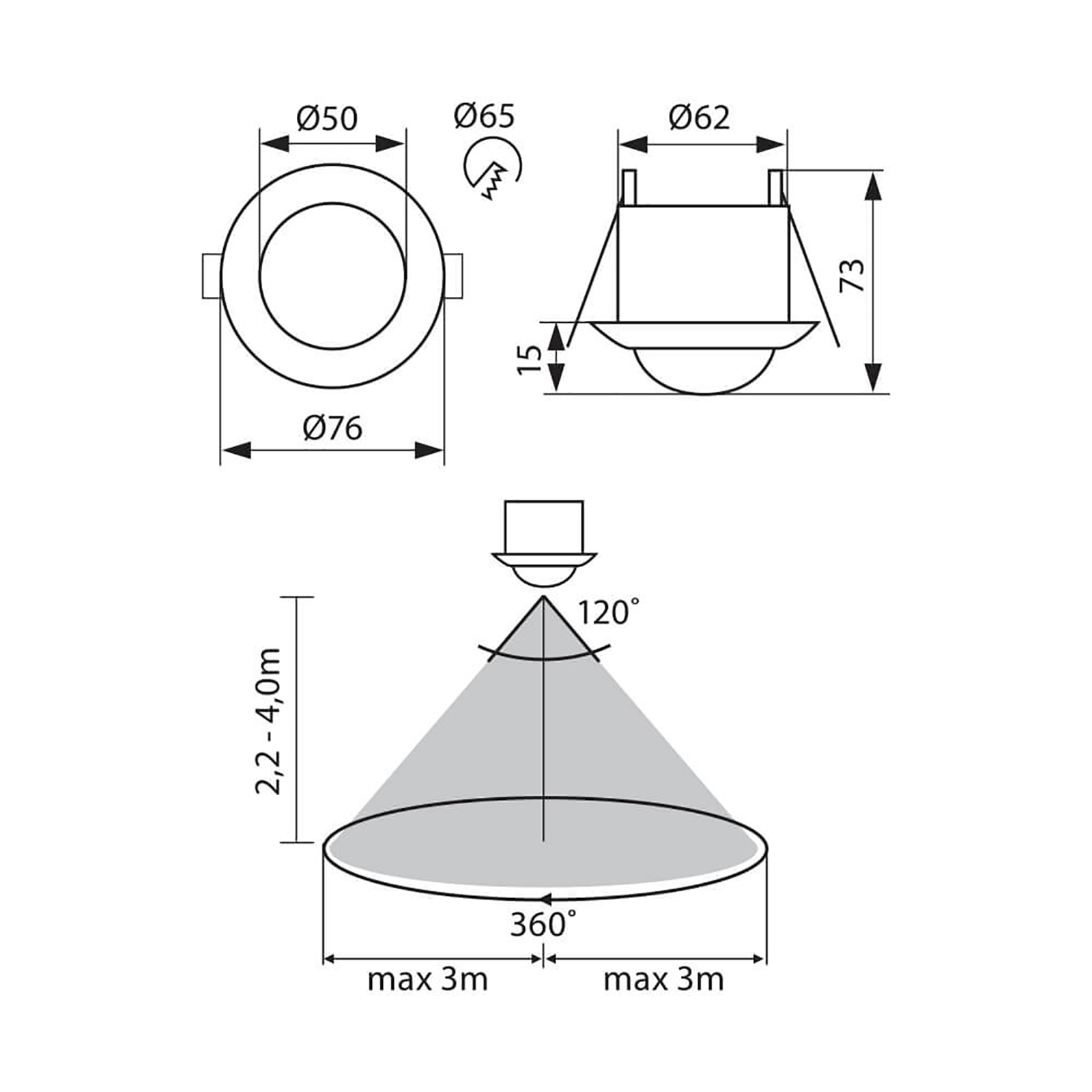 Dimensioni sensore: 76mm diametro esterno - 50mm diametro del sensore