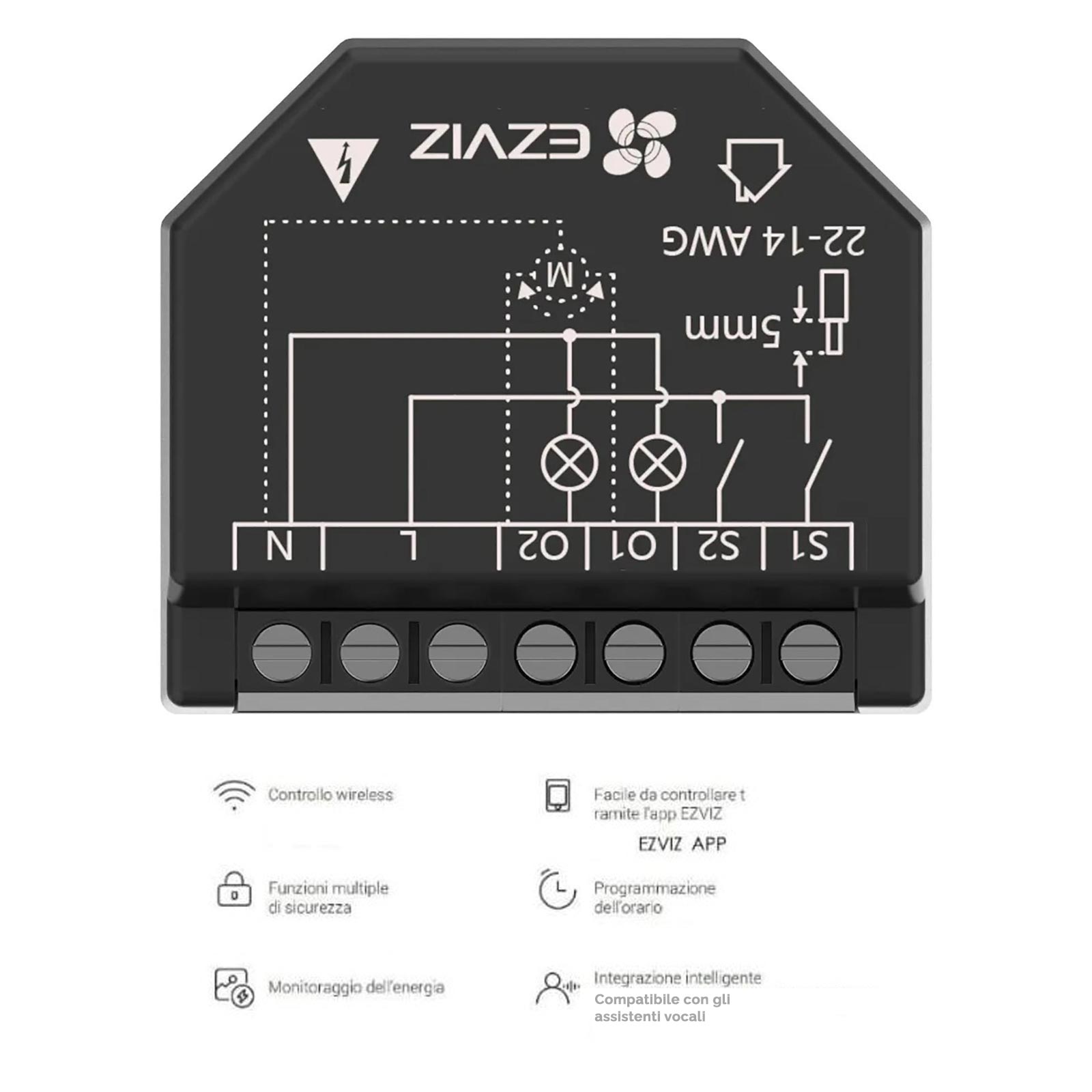 Rendi l’illuminazione smart in modo semplice e veloce grazie a questo relè EZVIZ con tecnologia WiFi. Gestisci l'illuminazione tramite il tuo smartphone. Basta integrare questo relè nella configurazione esistente e gestire le luci con un semplice tocco sullo smartphone. Programmi personalizzati dovunque e controllo delle luci tramite semplici comandi vocali. Le funzioni di sicurezza avanzate di questo dispositivo sono garanzia di sicurezza, mantenendo sicura la casa dai rischi elettrici.