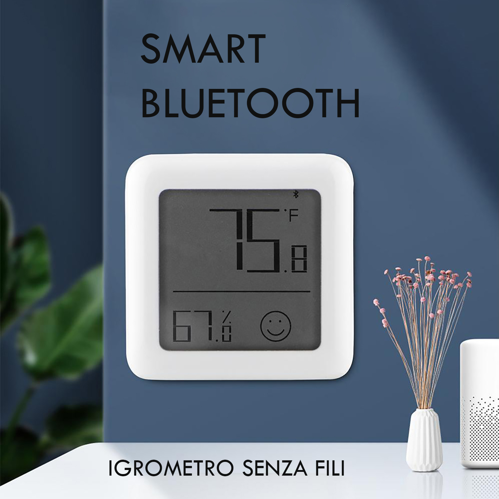 Termometro igrometro SMART BLUETOOTH piccolo e compatto dal design moderno utilissimo per tenere sotto controllo la temperatura e l'umidità presente nella propria abitazione o ufficio, facile da installare viene fornito completo di adesivo per il fissaggio a parete oppure può essere semplicemente poggiato su superfici piane. Si alimenta con una batteria 2032 ed ha un consumo energetico ridotto. Dotato di sensore di ultima generazione si collega tramite bluetooth al proprio smartphone e attraverso l'applicazione "SMART LIFE" possiamo gestire tutte le sue funzioni.