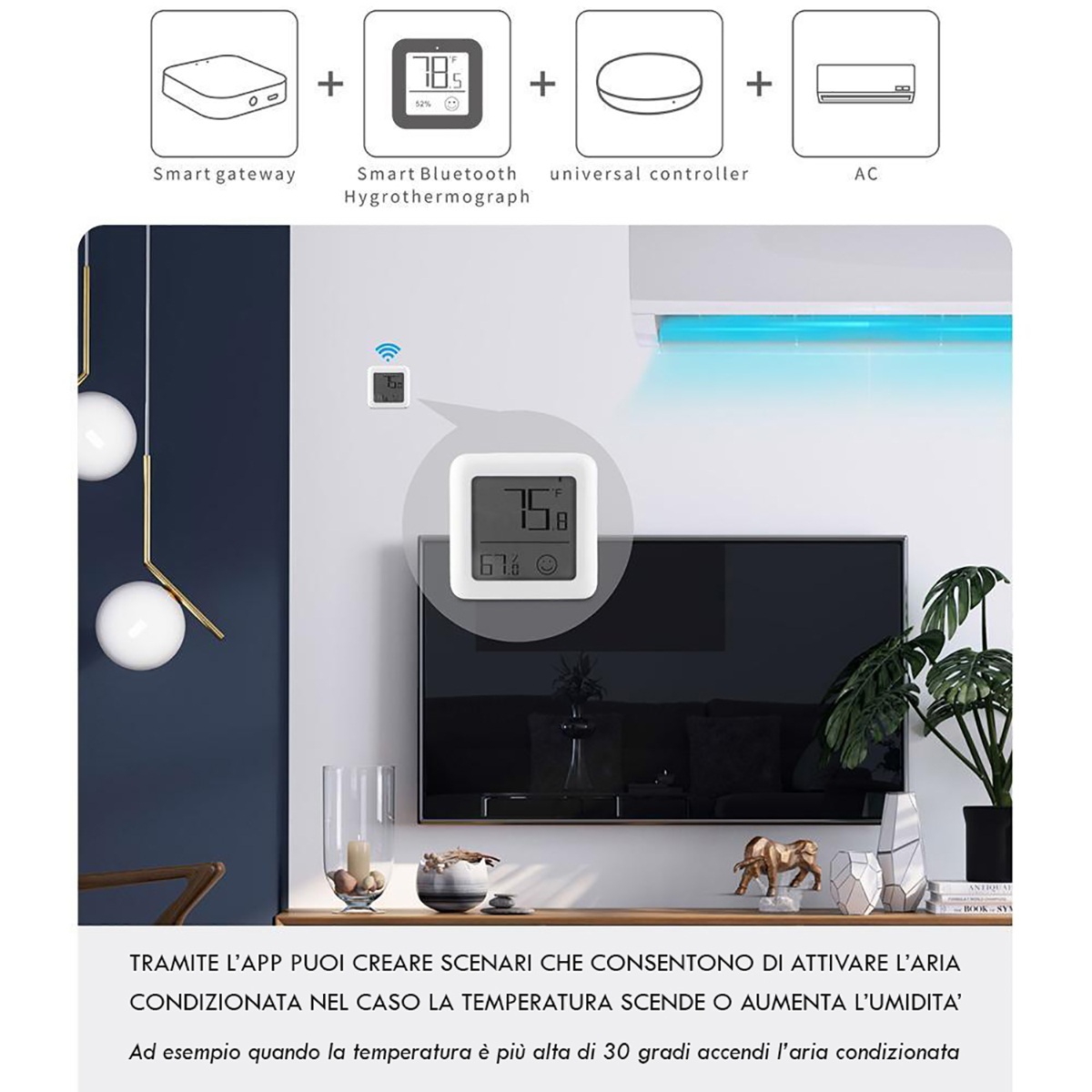 Termometro igrometro SMART bluetooth sensore temperatura umidita interna controllo APP Smart Life Alexa Google