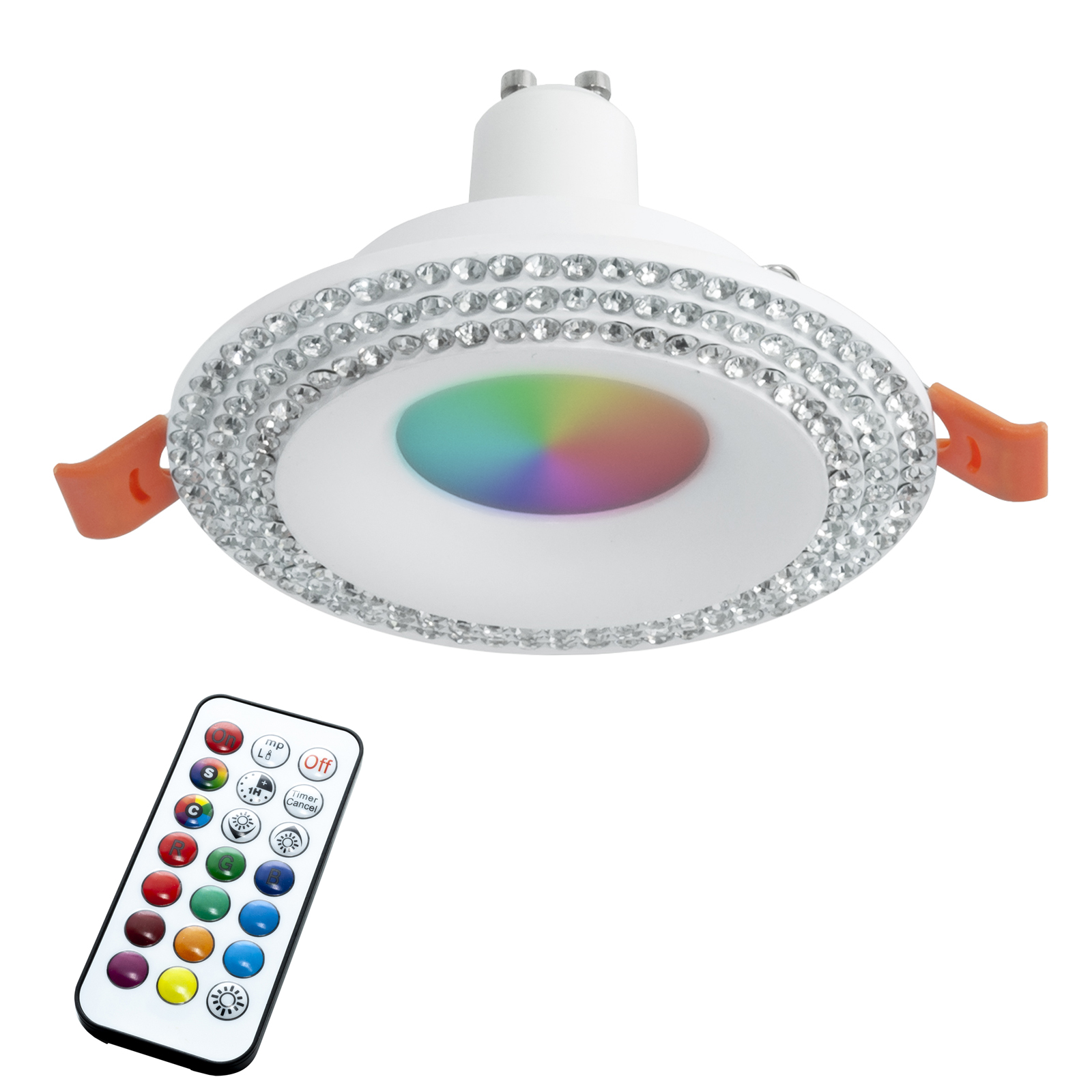 230V power supply - GU10 lamp socket with the ability to produce up to 256 colors selectable via the included remote control.