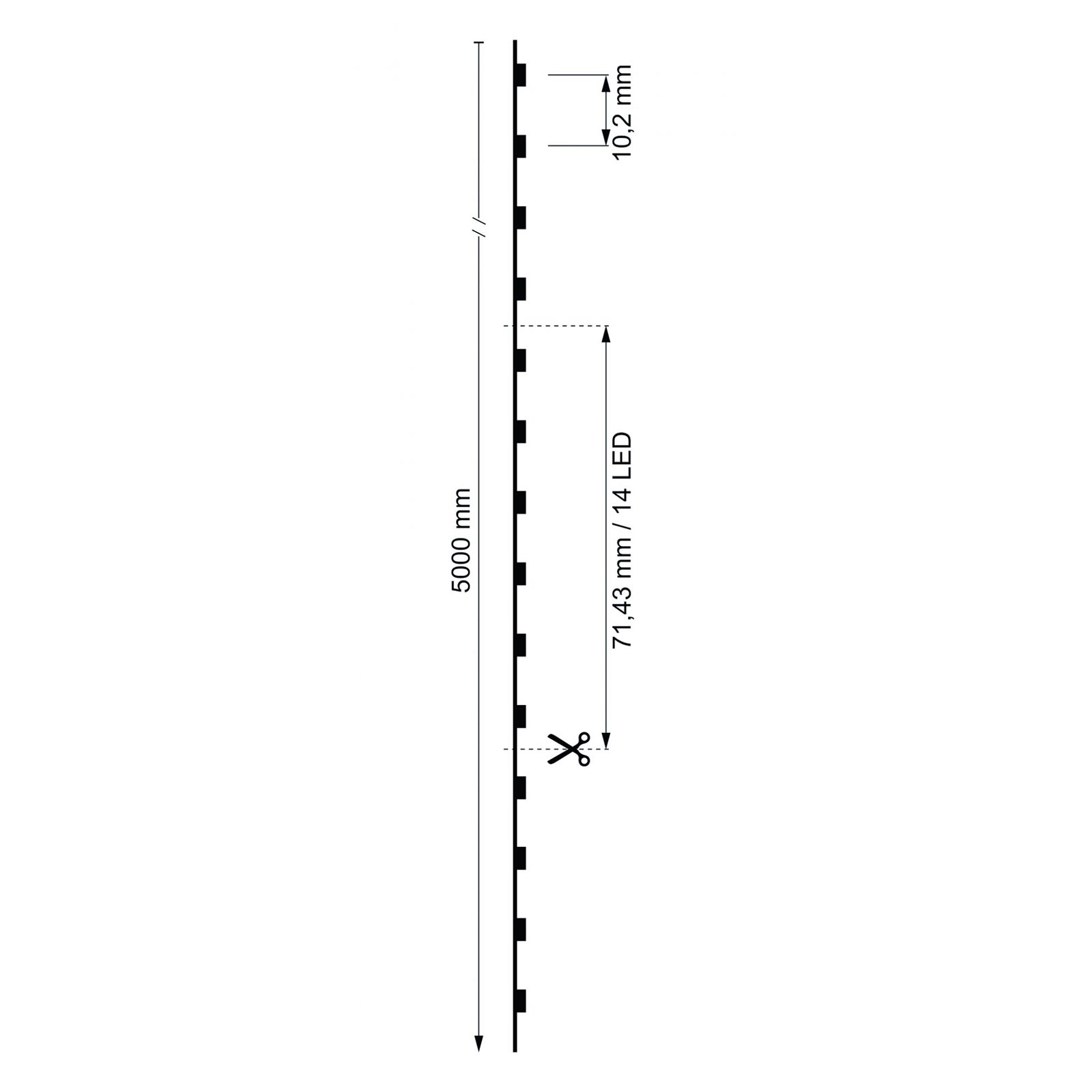 Opzione di taglio (ciascuna): 71,43 mm / 14 LED