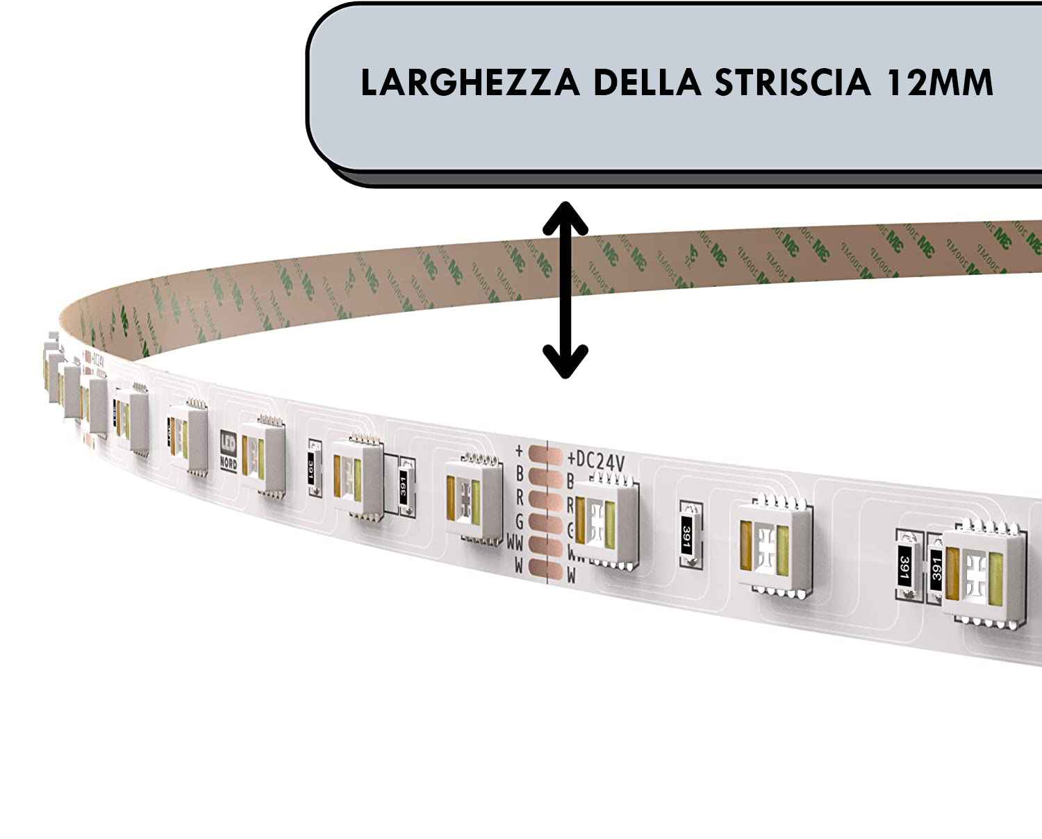 La striscia ha un angolo di luce diffuso di 120 gradi con una resa cromatica maggiore di 80 - Per gestire tutte le funzioni e per cambiare la temperatura luce, la striscia necessita di una centralina RGB CCT (non inclusa). Possibilità di collegarla a centraline WiFi per gestirla da remoto o tramite gli assistenti vocali.