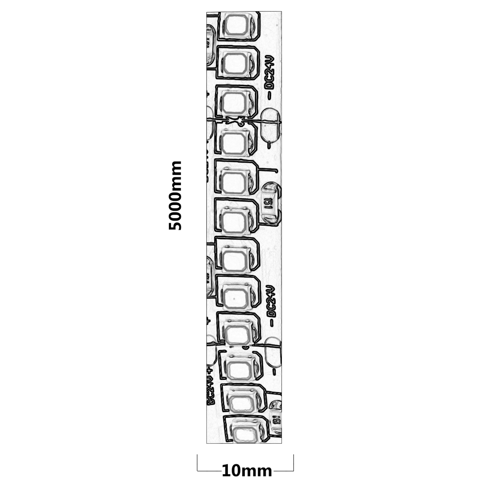 Dimensioni della striscia: 5 metri x 10 mm