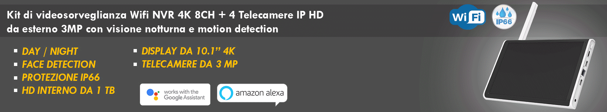 KIT NVR 8CH WiFi SMART controllo remoto registratore videosorveglianza 4 telecamera IP 3MP HD alta definizione IP66 esterno interno LAN Alexa Google
